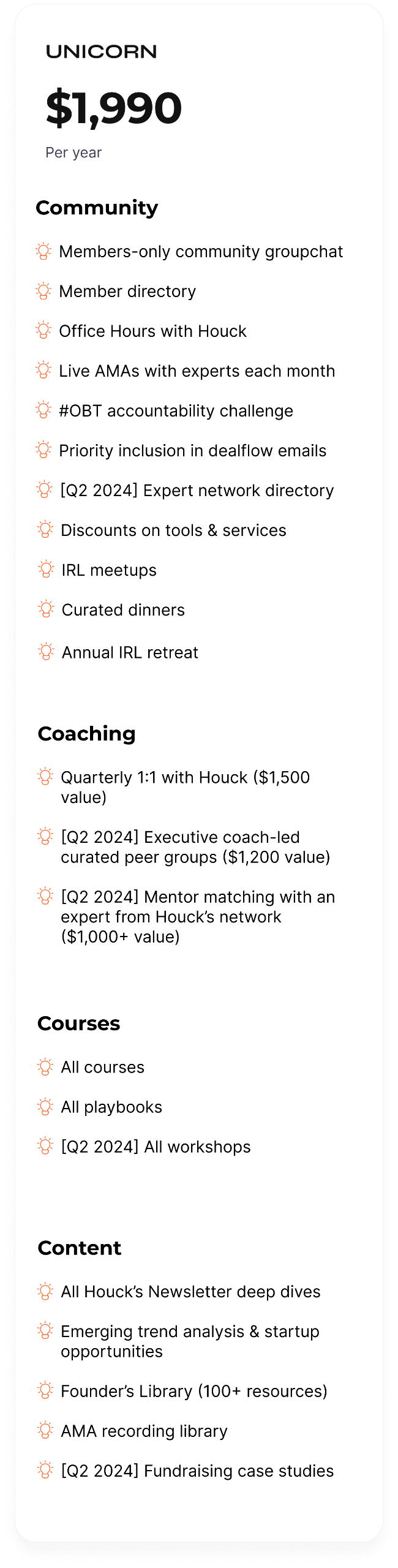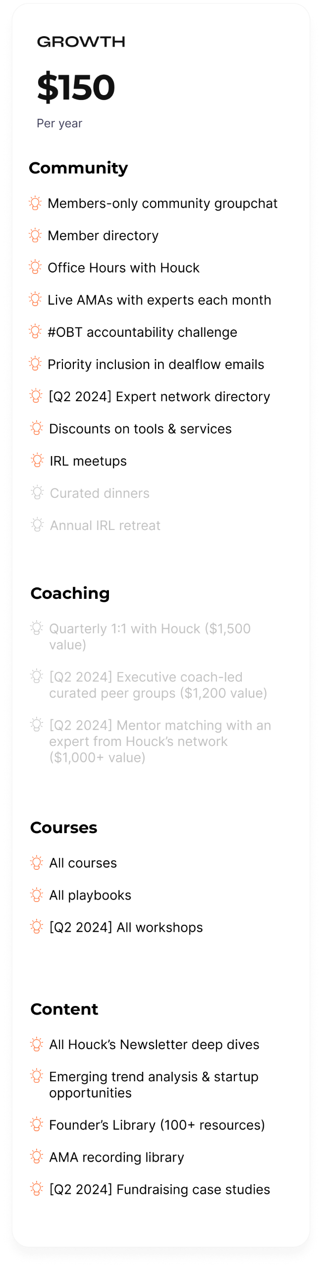 → 2+ monthly AMAs with experts like Emil Michael, Matt McGarry, and moreAnd later in 2024 we'll be announcing our first annual IRL founder weekend retreat.
