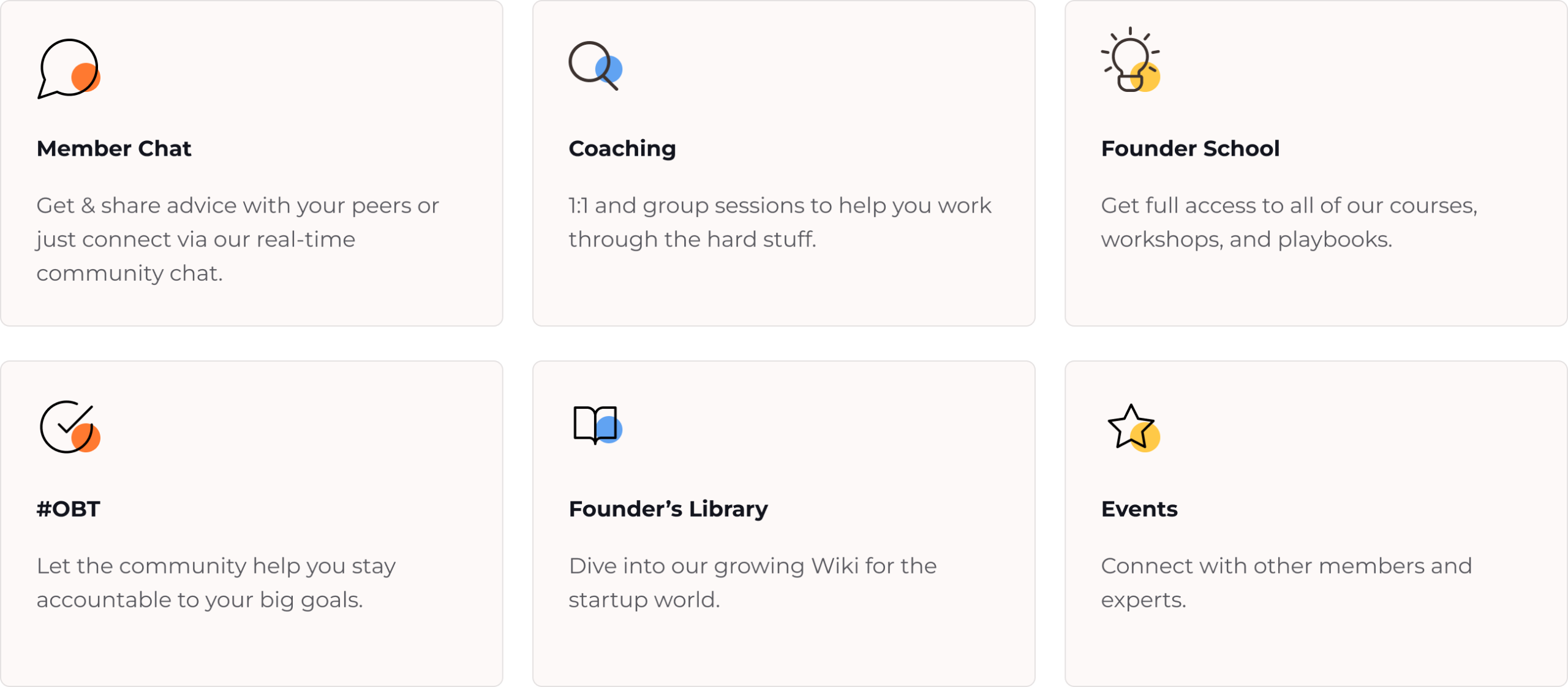 OBT stands for One Big Thing.Each month members can set ONE ambitious goal publicly within the community and commit to sharing a daily update with the group.A random member who hits their goal gets a shoutout across my social channels (150,000+ reach).OBT helps you stay focused on your north star and not get distracted by small fires.